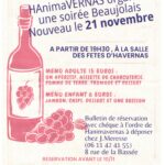 L’ASSOCIATION HAnimaVERNAS ORGANISE une soirée Beaujolais NOUVEAU le 21 NOVEMBRE à partir de 19h30 à la salle des Fêtes d’Havernas Menu adulte 15 Euros : Un apéritif, assiette de charcuterie, pomme de terre, fromage et dessert Menu enfant 6 Euros : Jambon, chips, dessert et une boisson BULLETIN DE RÉSERVATION AVEC CHEQUE […]